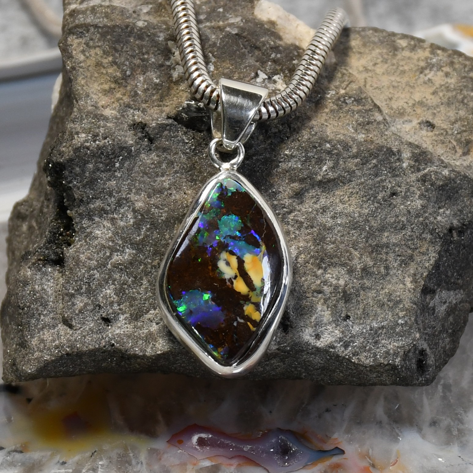 Boulder Opal Anhänger, 925 Silber