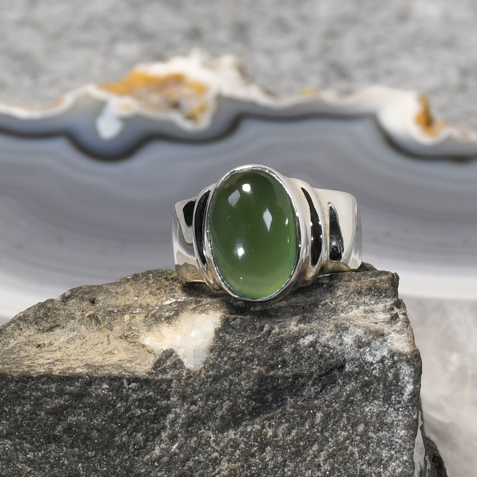 Jade Ring, 925er Silber