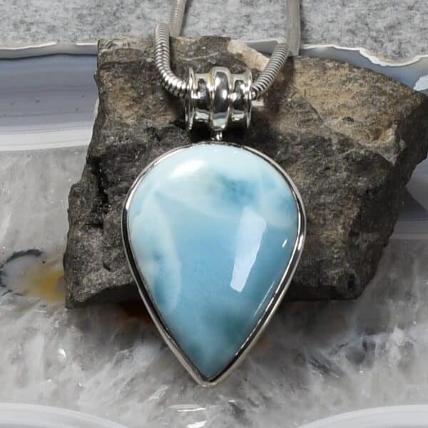 Der verarbeitete Larimar ist einzigartig gezeichnet und von hervorragender Qualität.