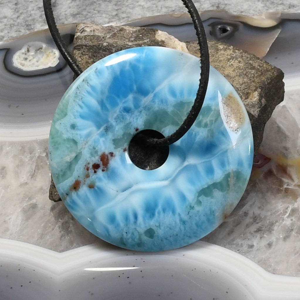 Larimar Anhänger, ohne Fassung, mit Gratis – Lederband