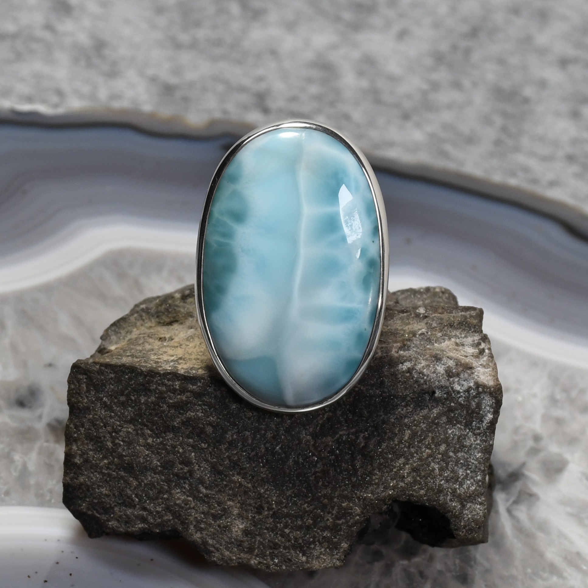Der verarbeitete Larimar ist einzigartig gezeichnet und von hervorragender Qualität.