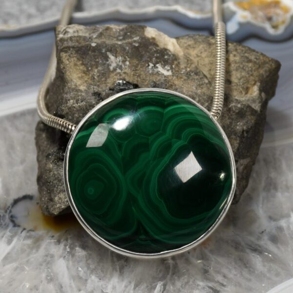 Der verarbeitete Malachit ist einzigartig gezeichnet und von hervorragender Qualität.
