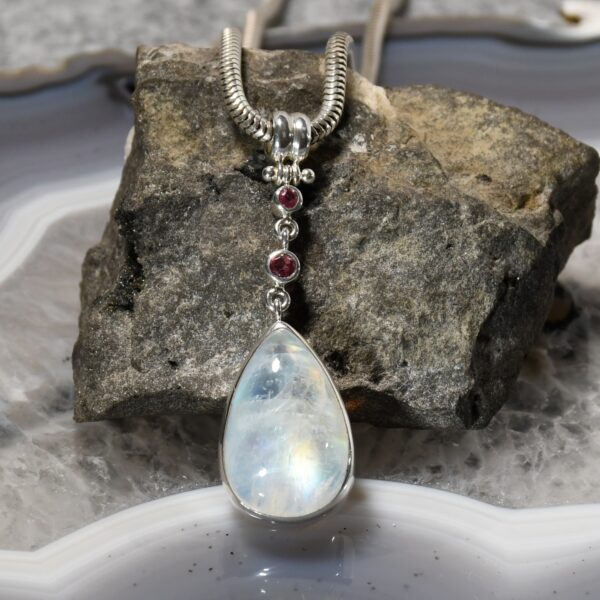 Mondstein Anhänger mit roten Turmalin, 925 Silber