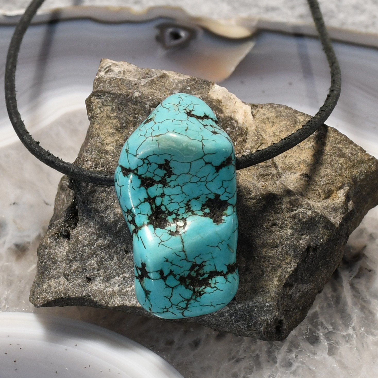 Einzigartig gezeichneter Türkis als Unikat-Schmuckstein aus China.